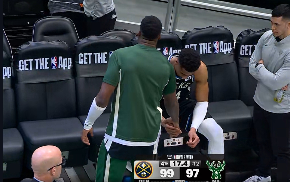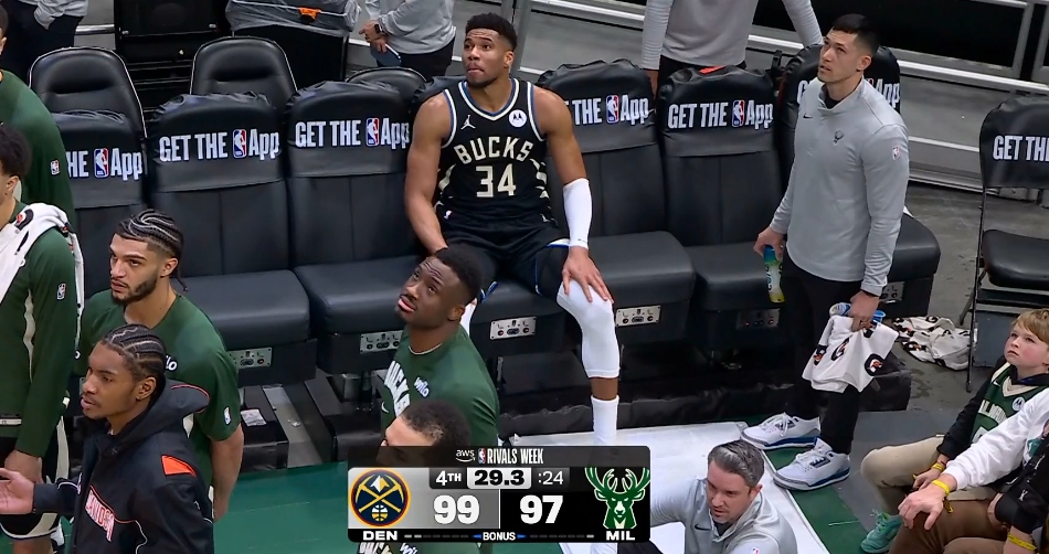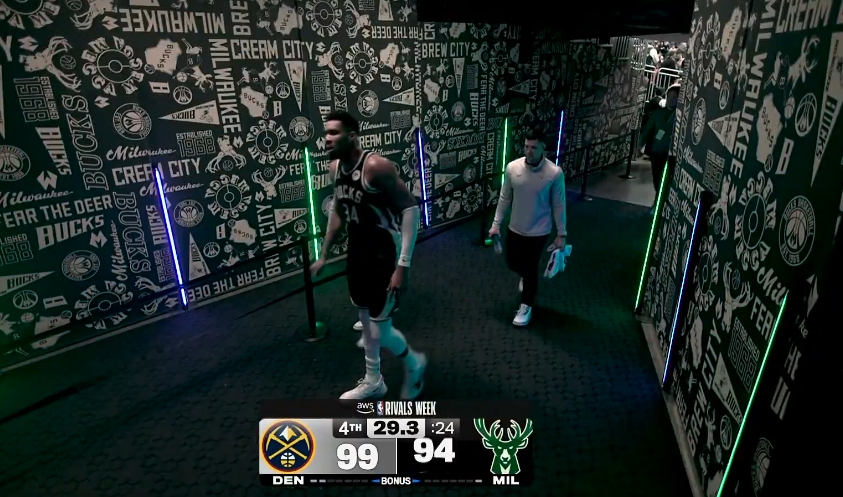 GIF-字母哥小腿不舒服啊!GIF-字母哥在球员通道走来走去!最后坐回了替补席GIF-字母哥很沮丧,字母哥哥安慰!... -
