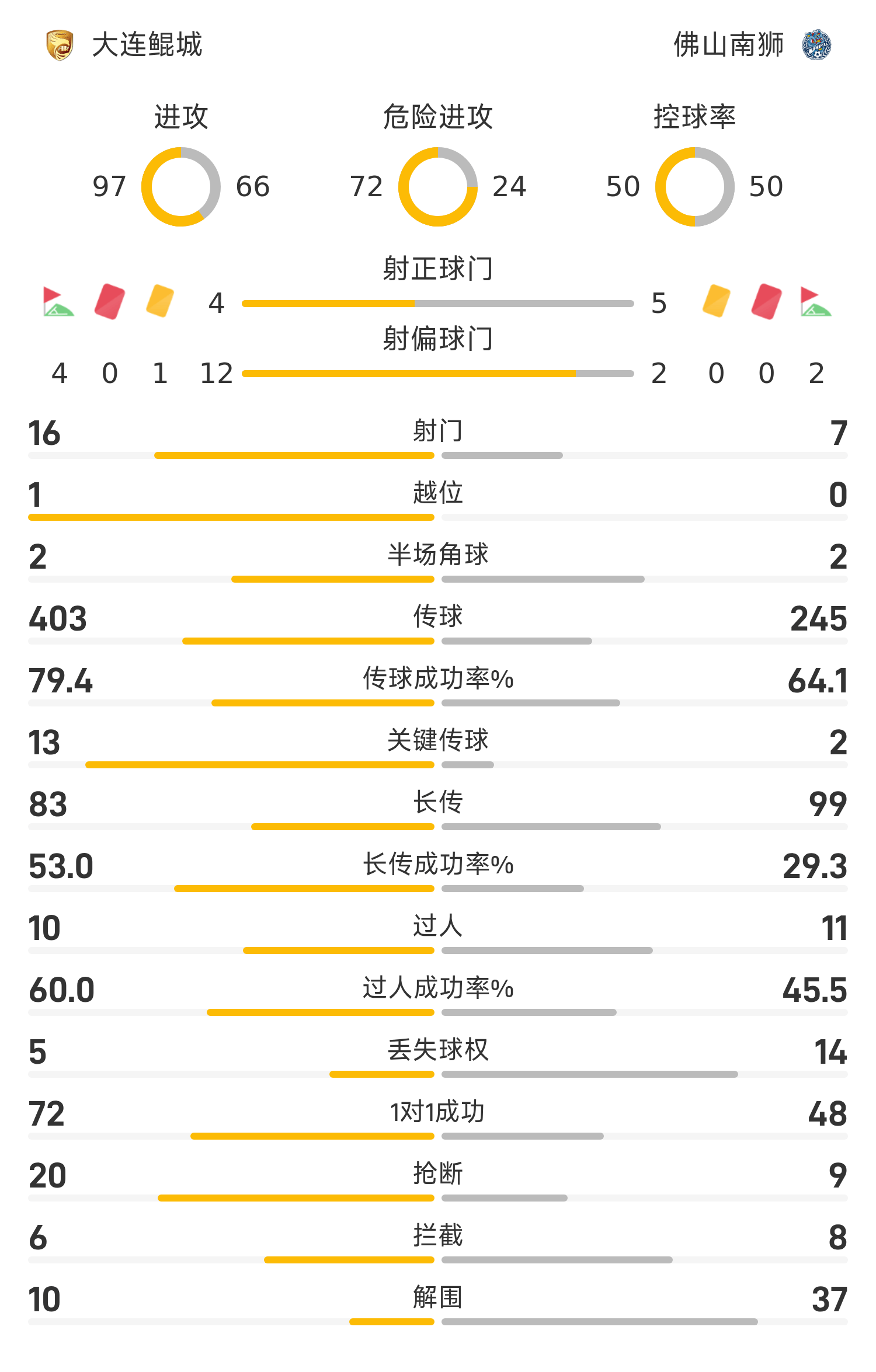 佛山南狮首发阵容:12-杨超;17-马斯拉奇;29-孙晓彬;13-张兴博;35-何明礼;7-尼古拉斯(89’16-化铭灿);36-史亮(89’24-吴昱辰);6-陈国抗;30-黄楚淇(65’26-游耀兴);10-福尔特斯;27-郑钧蔚(89’39-李博文)